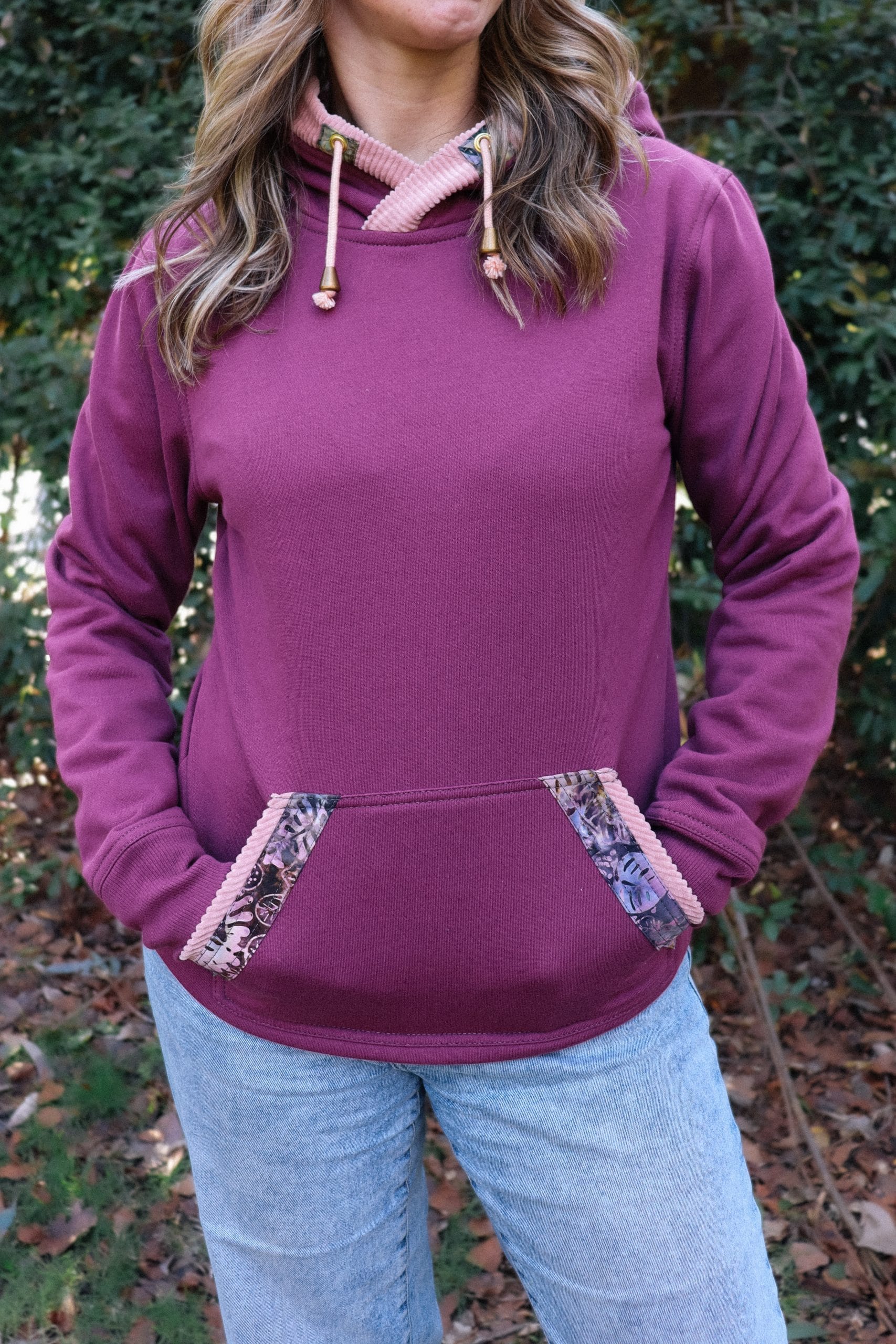 The Lilac Leaf design features a Golden Leaf print on the inner hood with a Rouge base & sleeves.